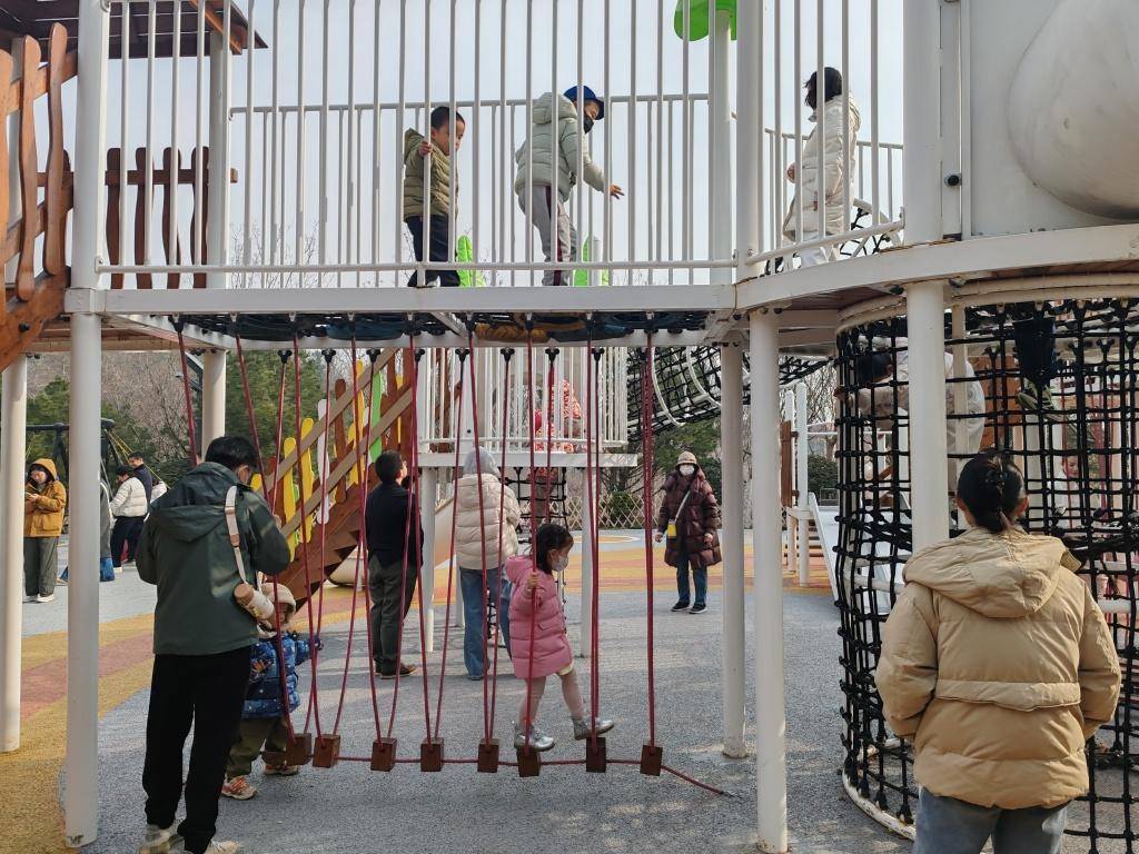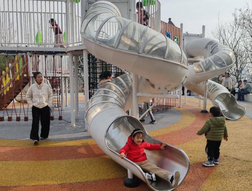 12月7日,岛城天气晴好,不少市民利用周末休息外出游玩。在浮山森林公园,不少市民与家人一起登山健身、游览,特别是山上的多处儿童游乐园,挤满了游玩的孩子们。