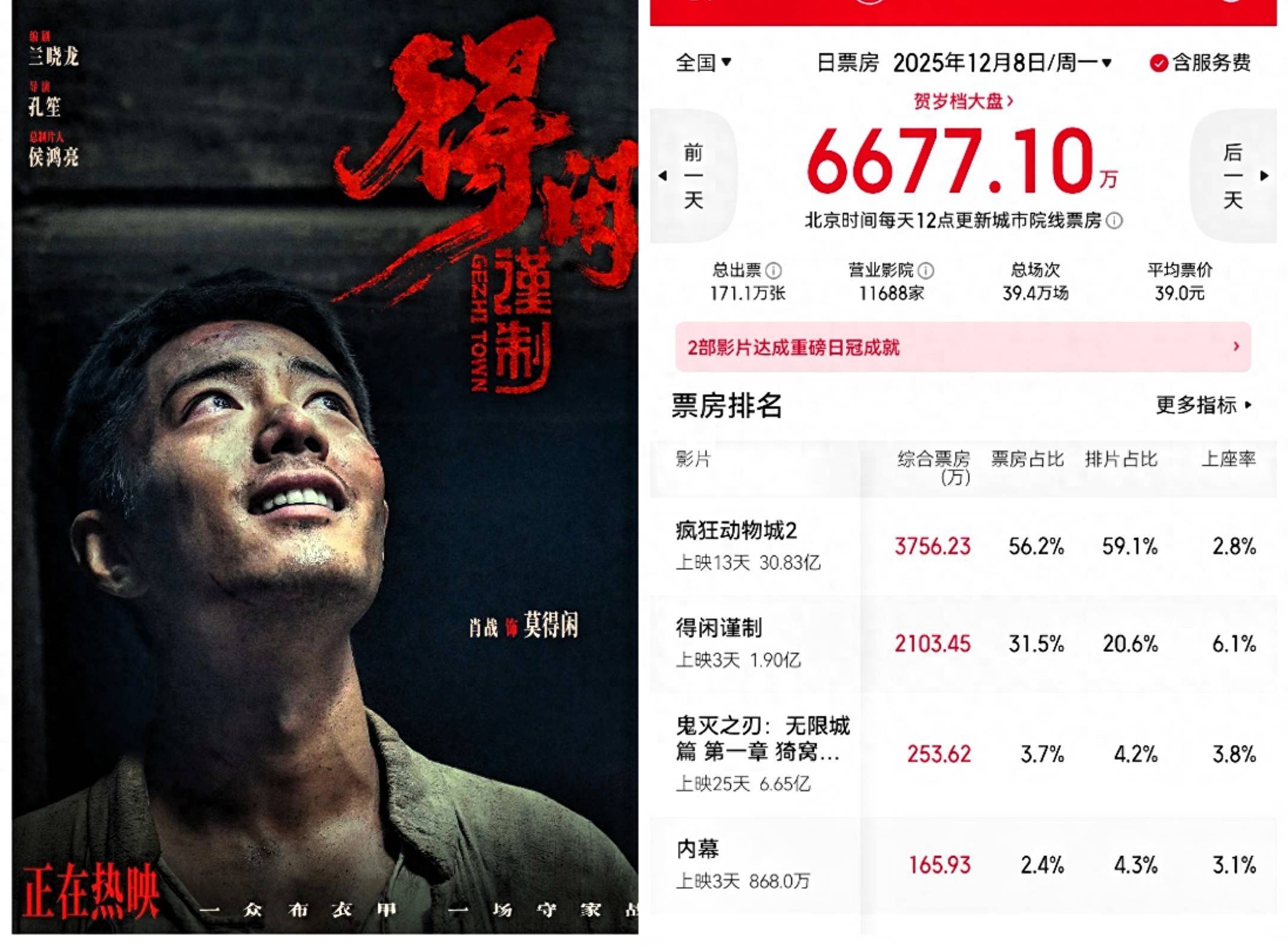 12月8日《荒诞动物城2》票房缩水7倍,《得闲谨制》等喝汤