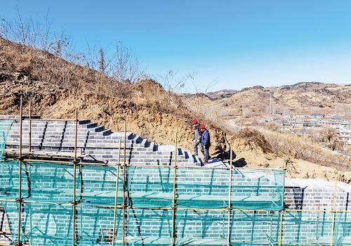 11月21日,碧空如洗,高玉华和工友们站在货运索说念支架旁,眼神紧盯着位于山下村里的建筑材料站,待专用土方装车实现,便操作着索说念滑轮将土方运奉上山。固然还是入冬,但气温稳当,他们正在备料为来岁春天的保护修缮现实状念准备。