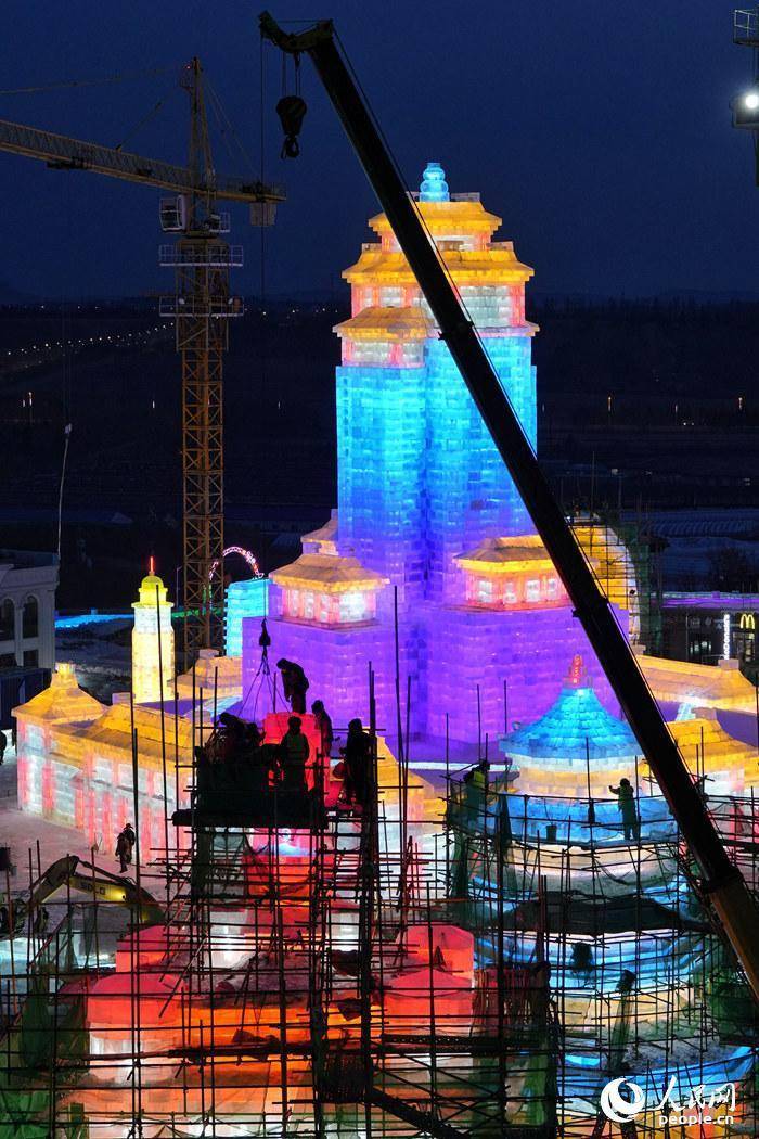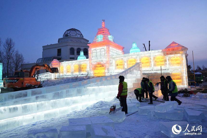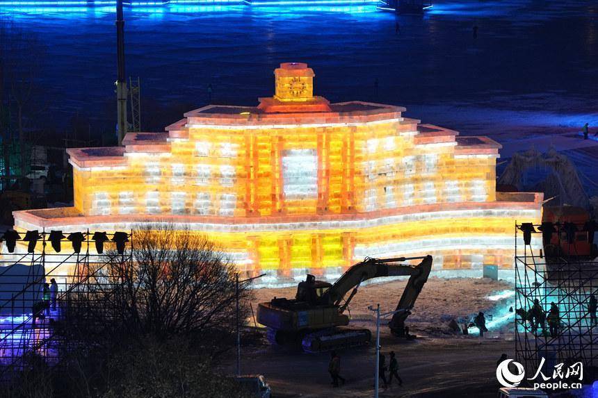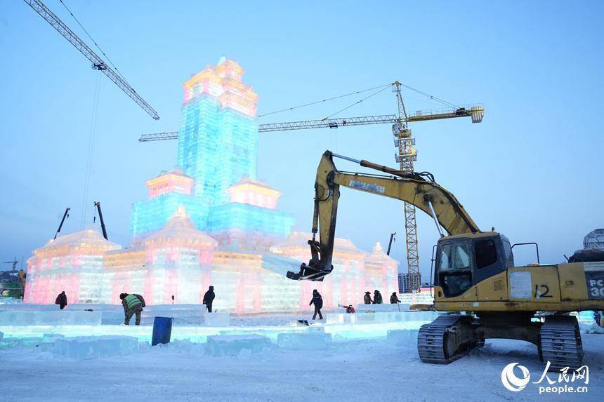 缔造中的大型冰建。东谈主民网记者 李洋摄