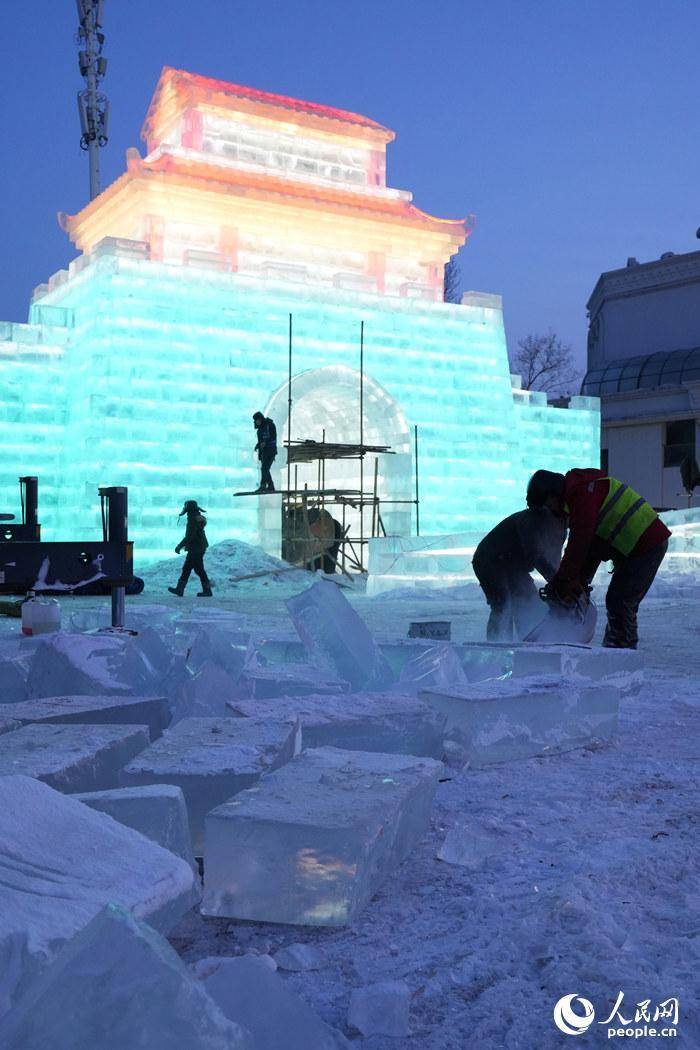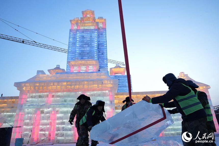 工东谈主正在对冰建外立面进行打磨。东谈主民网记者 李洋摄